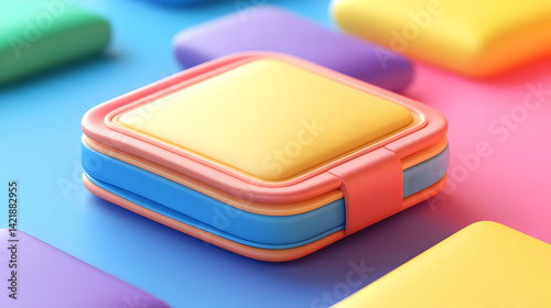 colourful, compact, device, technology, electronic, square, modern, stylish, portable, travel, accessory, contraption, blue, pink, yellow, orange, cute, small, mini, charge, power, battery, layered, design, product, innovation, tech, pastel, power source, energy, recharge