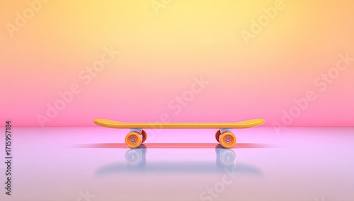 skateboard, pastel, orange, yellow, pink, gradient, background, three-dimensional, illustration, graphic, style, modern, minimalist, pop, art, design, skate, board, wheel, colours, high-coloured, bright, smooth, surface, product, display, light, shadow, flat, geometric, simple, contemporary, object, toy, retro, youth, fun, cool, sport, extreme, active, lifestyle, fashion, trend
