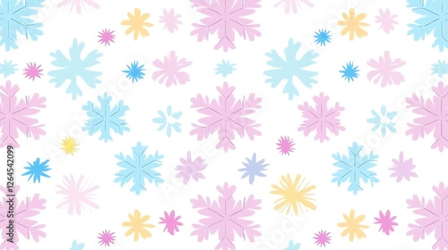 Pastel Snowflake Array A Gentle Winter Pattern on White Backdrop in Delicate Shades of Pink and Blue