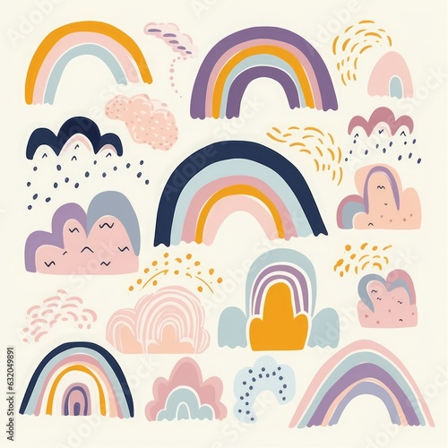 Pastel stylish trendy rainbows illustrations, Generative AI