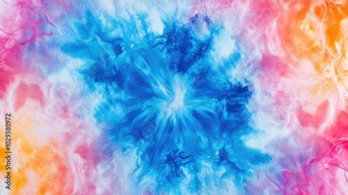 Pastel tie-dye pattern with blue and pink burst.