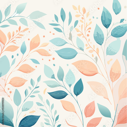 Pastel Watercolor Floral Illustration Soft Blue and Peach Leaves Background