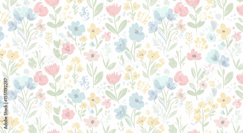 floral, pattern, pastel, watercolor, flower, spring, background, delicate, seamless, textile, blossom, botanical, summer, design, nature, elegant, fabric, print, vintage, texture, wallpaper, cute, decorative, drawing, bloom, artistic, scrapbooking, surface, decoration, vector, wrapping, graphic, light, colourful, paper, meadow, illustration, gentle, soft, girlie, feminine, romantic, cheerful
