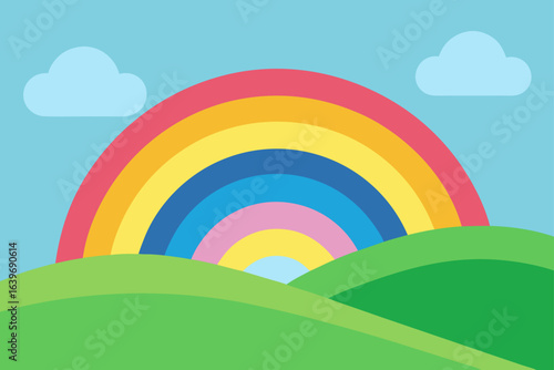 rainbow, sky, cloud, vector, illustration, nature, landscape, grass, summer, spring, cartoon, colours, cloud, sun, colourful, design, art, green, flower, blue, field, bright, wallpaper, meadow, weather
