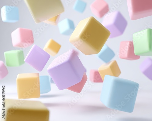 Pastel-colored cubes floating in the air