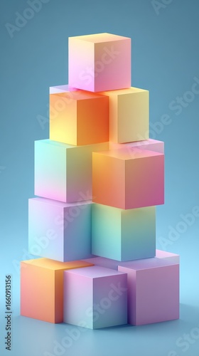 Pastel-colored cubes stacked in a pyramid shape against a light blue background