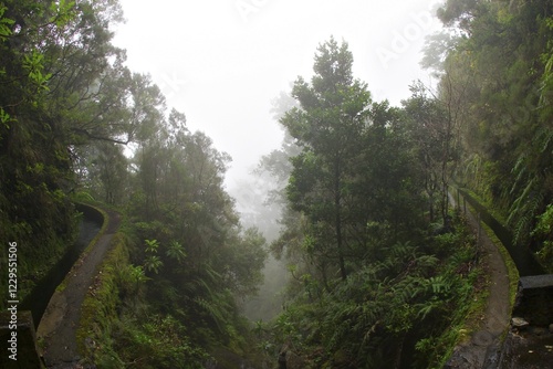 curve, forest, water, nature, portugal, europa, irrigation, fog, turn, bend, madeira