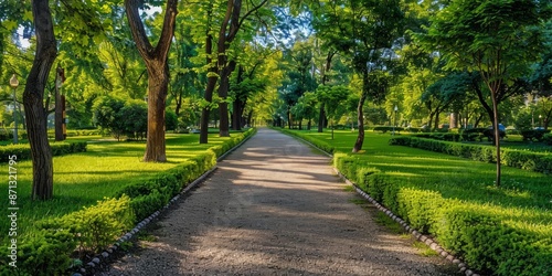 pathway, park, green, tree, hedge, grass, gravel, landscape, nature, summer, daytime, sunshine, foliage, leaf, branch, canopy, paseo, garden, lawn, garden path, recreation, calmness, peaceful, serenity, calm, relaxing, natural beauty, bright, vibrant, lush, horizon, shadow, light, perspective, day, daylight, natural, photo, photo