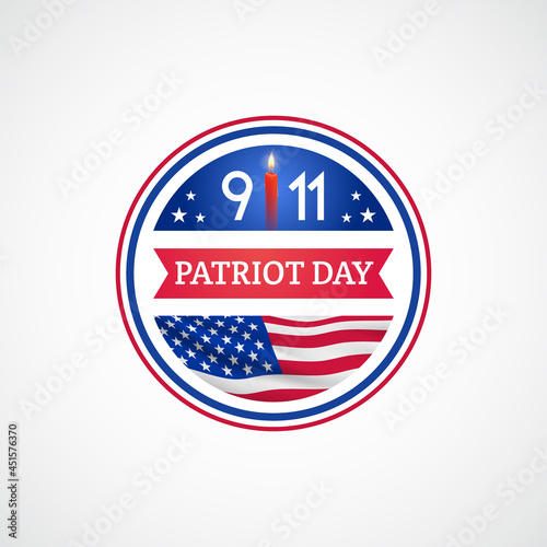 Patriot Day label with American flag. 9/11 Day of Remembrance. Vector design template for badges, stickers, stamps.