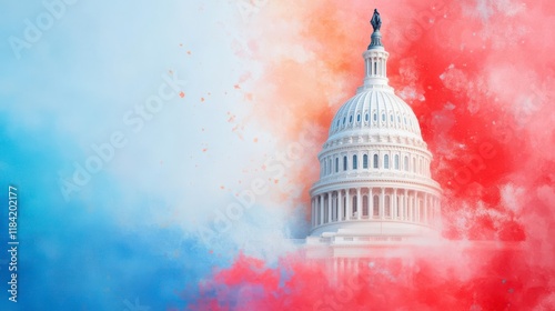 capitol, dome, building, architecture, america, us, patriotic, red, white, blue, watercolor, paint, art, design, freedom, democracy, government, politic, nation, country, symbol, hope, pride, power, strength, vibrant, colourful, abstract, image, illustration, graphic, visual, style, technique, concept, mood, feeling, emotion, celebration, oneness, independence, liberty, symbolic, national, heritage, culture, society, context