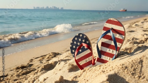 beach, sand, sea, summer, flip, ocean, sandal, water, vacation, shoe, travel, holiday, coast, sandal, tropical, flip-flop, shoe, footwear, shore, pink, flip-flop, fun, sun, relaxation, us, american, patriotic, star, and, stripes, red, white, blue, flag, shoreline