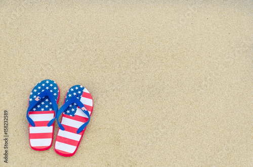 flip-flop, sandal, america, american, background, beach, blue, calm, celebration, country, decoration, fourth, freedom, holiday, 4th july, july, labour day, liberty, may, memorial day, nation, national, ocean, patriot, patriotic, patriotism, proud, red, sand, sandy, star, symbol, us, water, white, us