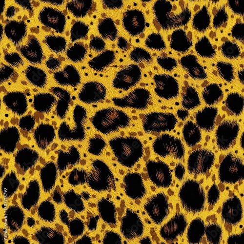 Pattern of bold black spots on bright yellow background showcasing animal print design