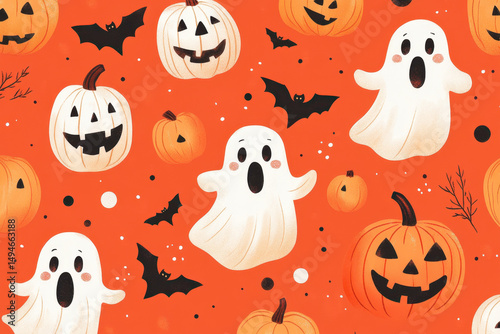 ghost, pumpkin, halloween, pattern, skittish, autumn, decoration, festive, season, orange, black, playful, october, holiday, scarey, cute, lantern, fun, whimsical, celebration, traditional, costume, ghostly, eerie, whimsy, spirit, haunting, decoration, creepy, haunted, autumn, jack-o-lantern, trick or treat