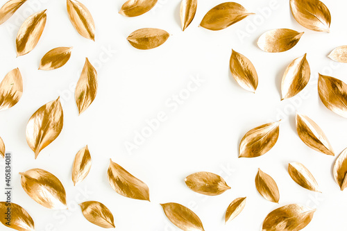 Pattern, texture with gold leaves isolated on white background. flat lay, top view