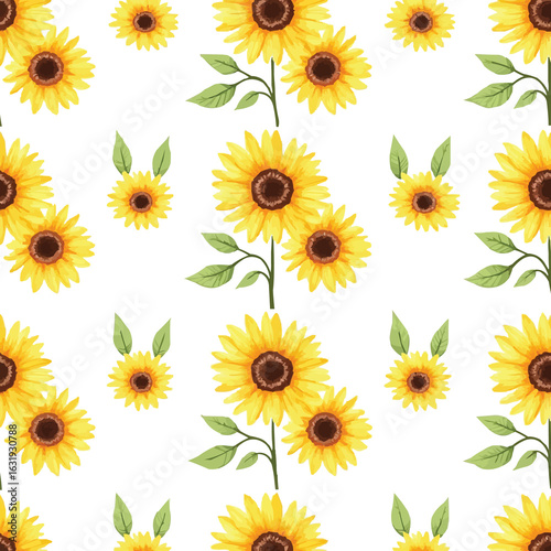 pattern watercolor sunflower with leaves