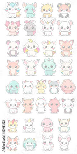 cartoon, animal, icon, set, vector, animal, cat, dog, baby, panda, pig, rabbit, illustration, face, bear, head, pet, zoo, cute, lion, cow, collection, tiger, character, fun, pattern, seamless, children, children, design, wallpaper, boy, symbol, decoration, toy, anime, japan, animation, logotype, business
