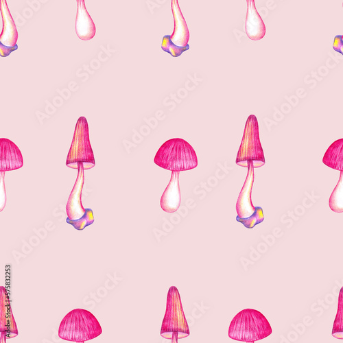 mushroom, mushroom, plant, pattern, ornament, seamless, watercolor, crayons, hand, drawn, cartoon, paper, texture, fabric, textile, wrapping paper, pink, crimson, purple, pastel, violet, decoration, art, design, illustration, fashion, print, style, beauty, card, invitation, shape, magical, fantasy, nature, forest, botanic, botanical, cute