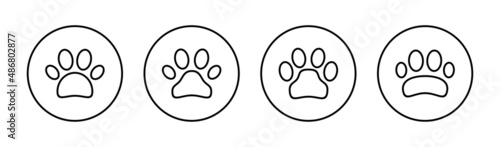 Paw icons set. paw print sign and symbol. dog or cat paw
