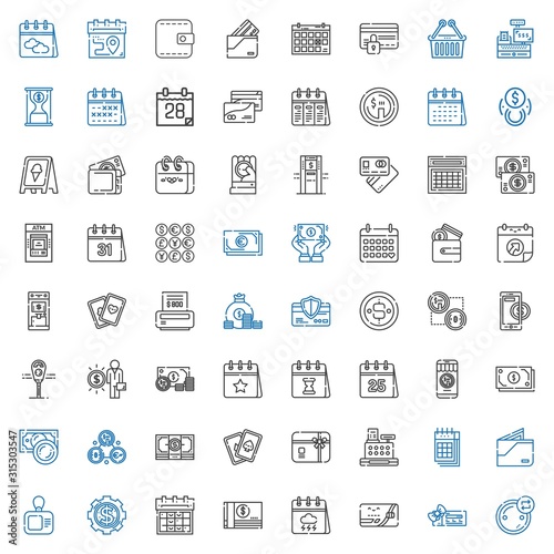 pay, icon, set, vector, exchange, vouchers, credit, card, calendar, money, billfold, cashier, gift, card, cash, salary, parking, meter, online, payment, coin, bill, atm, dollar, coin, debit, signs, time, is, illustration, symbol, business, design, isolated, graphic, flat