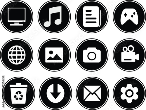 icon, set, symbol, icon, web, buttons, vector, signs, cyberspace, buttons, business, computer, illustration, music, phone, arrow, media, design, camera, mail, network, home, communication, document, circle