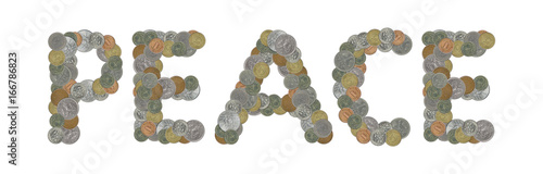 coin, peace, word, global, heap, finance, news, web page, cyberspace, banner, economy, message, symbol, concept, idea, white background, alphabet, business, web, stock exchange, trade, industry, material, metal, banking, social issue, savings, donate, background, old, stack, advertisement, money, store