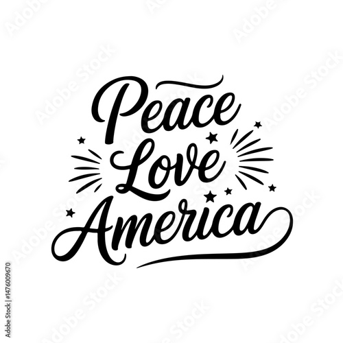 Peace Love America. 4th July Vector Design Isolated on White Background