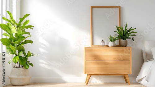 interior, room, furniture, dresser, decor, plant, vase, frame, window, natural, wood, minimalism, scandinavian, design, home, house, living, modern, style, cosy, comfortable, relaxing, calm, bright, airy, serene, peaceful, organic, earthy, rustic, simple, clean, elegant, contemporary, minimalist, nordic, lifestyle, arrangement, harmony, balance, aesthetic, atmosphere, calmness, ambience, soothing, inviting, bedchamber, chest, drawer