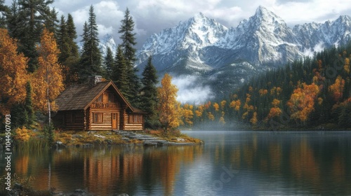 Peaceful lakeside cabin with rustic charm and scenic views. Featuring a cozy retreat and natural surroundings. Highlighting tranquility and rustic appeal. Ideal for travel and rustic decor magazines.