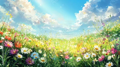 meadow, wildflower, nature, serene, landscape, peaceful, flower, grass, vibrant, outdoors, calmness, summer, beauty, scenery, environment, calm, rural, natural, sky, bright, relaxation, wildlife, panoramic