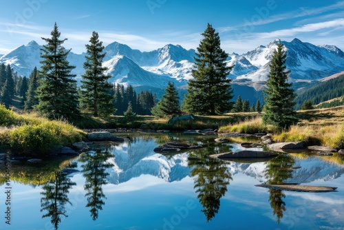 Peaceful mountain lake with trees