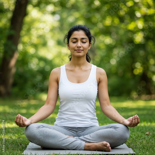 meditation, nature, yoga, white top, mindfulness, calm, forest, greenery, woman, park, exercise, fitness, relaxation, meditating, sitting, grass, lotus, people, beauty, lifestyle, outdoors, health, relax, person, summer, green, pose, sport, healthy