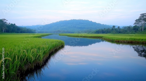 river, water, landscape, nature, green, calm, peaceful, serene, tranquil, scenic, sky, cloud, hill, vegetation, field, grass, rural, countryside, outdoors, environment, natural, beauty, view, scenery, panorama, horizon, travel, tour tourism, destination, photo, photo, image, picture, still, calmness, peace, serenity, calmness, stillness, quietude, unwind, relax, escape, rejuvenate