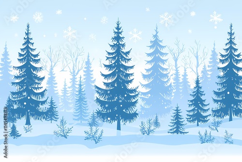 Peaceful Winter Forest with Snowflakes and Blue Trees