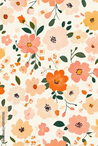 floral, peach, pattern, spring, design, textile, fabric, flower, blossom, bloom, orange, pink, background, wallpaper, texture, seamless, illustration, art, nature, beauty, summer, romantic, delicate, pretty, elegant, feminine, pastel, soft, bright, vibrant, cheerful, happy, fresh, garden, botanical, floral pattern, seamless pattern, textile design