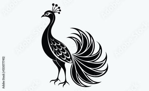 peacock, bird, feather, tail, elegant, exotic, luxurious, wildlife, nature, fauna, animal, grace, beauty, black-and-white, silhouette, vector, outline, illustration, design, decoration, decorative, royals, standing, art, graphic, stylish, ornamental, fancy, majestic