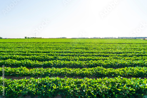 peanut, horizon, cloudscape, industrial, lush, cloud, cultivation, cultivated, grow, sunlight, plantation, fresh, farmland, agricultural, nature, landscape, green, field, agriculture, rural, summer, plant, sky, farm, leaf, farming, countryside, background, blue, land, food, growth, crop, organic, industry, natural, harvest, scene, tree, row, season, growing, spring