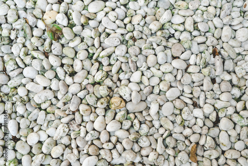 Pebble stone texture on the ground. The pebbles closely stone texture features.