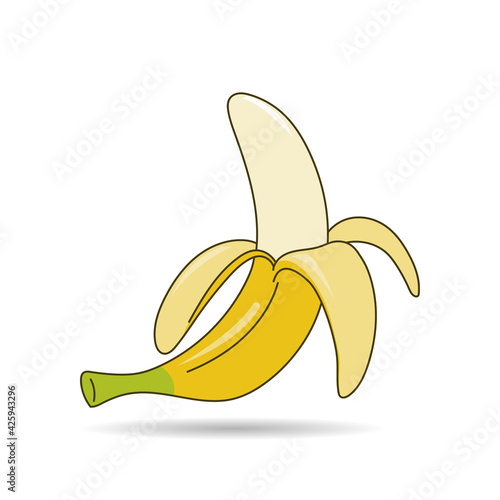 banana, fruit, food, isolated, yellow, peel, white, ripe, healthy, tropical, peeled, fresh, sweet, eating, open, object, diet, skin, vegetarian, snack, closeup, organic, vitamin, single, natural, cartoon, illustration
