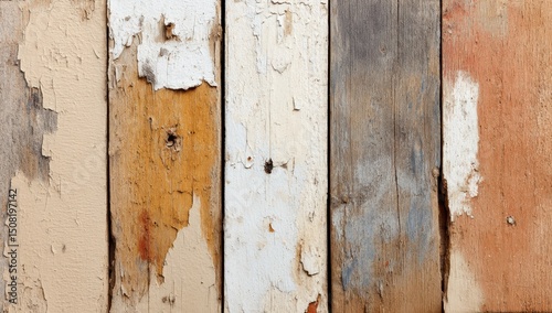 wood, plank, paint, weathered, peeling, aged, texture, vertical, horizontal, rustic, old, brown, grey, white, beige, yellow, orange, colourful, damaged, surface, detail, worn, rough, natural, grain, hole, flaking, layer, colours, pattern, vintage, decay, time, decayed, detailed, close, up
