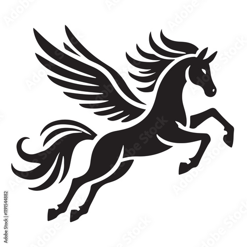 pegasus, horse, winged, mythical, creature, fantasy, myth, legend, silhouette, vector, illustration, magical, powerful, flying, greek, mythology, art, design, symbolism, divine