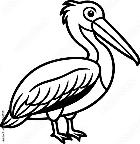 Pelican bird simple black line art image, Black bold outline vector icon, Bird vector illustration