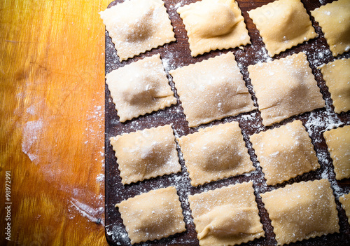 ravioli, pin, meal, table, plate, kitchen, delicious, white, dough, egg, fennel, russian, homemade, baking, traditional, spoon, dinner, eat, form, pasta, taste, lunch, desk, dumpling, cook, spilled, cookery, rolling, wooden, sheet, background, fresh, board, cooking, food, ingredient, meat, flour, parsley, raw, dill, onion, fish, chopping board, cut, mince