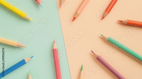 pencils on a light green and light beige background