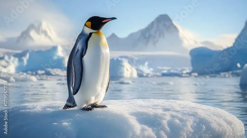 penguin stands gracefully on an ice floe in Antarctica