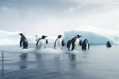 penguins floating on ice