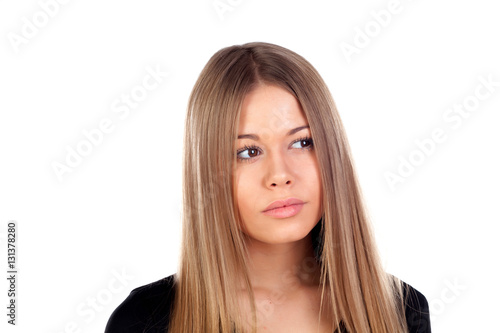 beauty, young, woman, stylish, female, pensive, girl, model, beautiful, adult, caucasian, hair, attractive, lady, face, cute, pretty, fashion, sensual, portrait, looking, person, isolated, thinking, coiffure, white, expression, style, elegant, people, lifestyle, blond, modern, background, black, posing, idea, fashionable, make-up, vogue, natural, charming, cosmetic, professional, glamourous