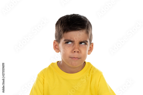Pensive child with yellow t-shirt