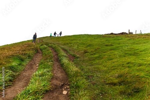 landscape, sky, nature, grass, field, hill, green, mountain, blue, summer, path, walking, road, people, hiking, meadow, tree, cloud, countryside, cloud, walk, outdoors, woman, person