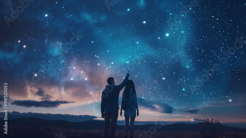 couple, silhouette, night, people, woman, sky, star, star, blue, nature, light, dark, black, astrology, astronomy, universe, boy, girl, dream